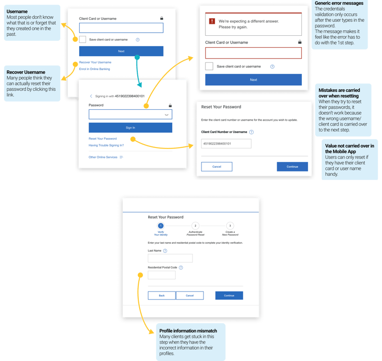 I also identified risks of disrupting daily banking, created a mitigation plan with business partners, and, using call listening insights, proposed to redesign the sign-in and reset flows to reduce password-related call volume.